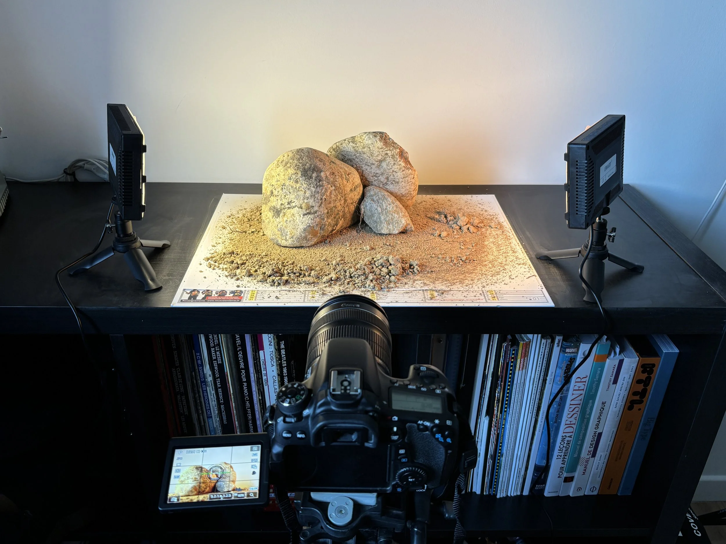 J’aime pouvoir créer des images, des ambiances à partir de pas grand chose. Pour ce visuel c’est tout simplement en retournant la terre de mon potager que j’ai vu ces pierres et je me suis dit : "Tiens, je pourrais bien faire quelque chose avec ça…”